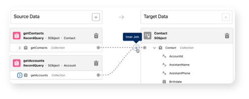- The builder must select two source collections to join and identify one collection into which these two will be merged.