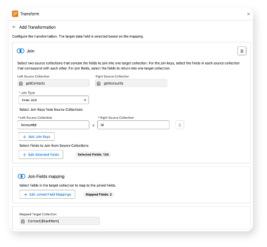 In the Spring ’25 release, Salesforce introduces the Transform Join feature, designed to streamline how users manage and manipulate data within flows. This feature simplifies the process of combining datasets, such as orders and products, by automatically performing inner joins. With Transform Join, users can effortlessly create a unified list of products linked to their respective orders, while filtering out any draft orders without products and products without orders. This enhancement not only reduces the complexity of data preparation but also ensures that only relevant and complete records are processed, enhancing the overall efficiency and accuracy of data handling within Salesforce.