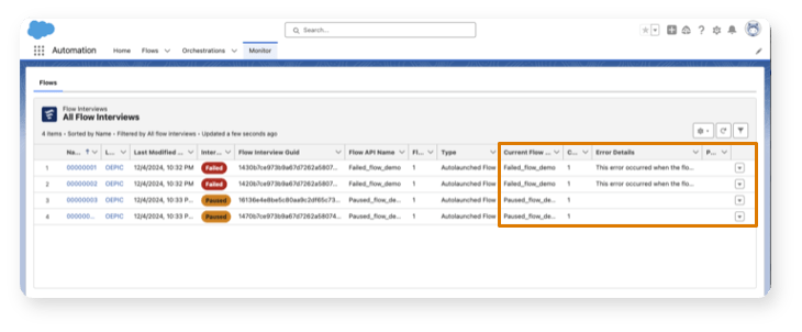 Moreover, users now have the ability to view both paused and failed flows in a consolidated list view. This feature streamlines the process of monitoring flow statuses and managing flow executions, enhancing overall workflow oversight. By integrating these functionalities into the automation app, Salesforce empowers users to maintain seamless and error-free automated processes, ultimately improving operational efficiency and reliability.